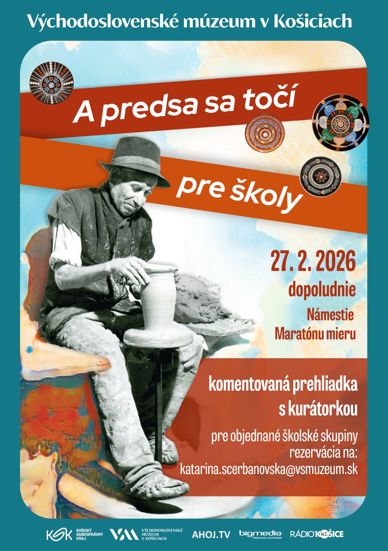 Milé pani učiteľky, milí páni učitelia, výstava A predsa sa točí približuje 600 ročnú históriu pozdišovskej keramiky. Využite jedinečnú príležitosť a spoznajte výstavu očami kurátorky výstavy - ktoré predmety sú jej najobľúbenejšie, ktoré zbierky sú najstaršie, ako vyzerala príprava keramiky na panstve v Pozdišovciach, či aké to je starať sa o zbierky v múzeu.