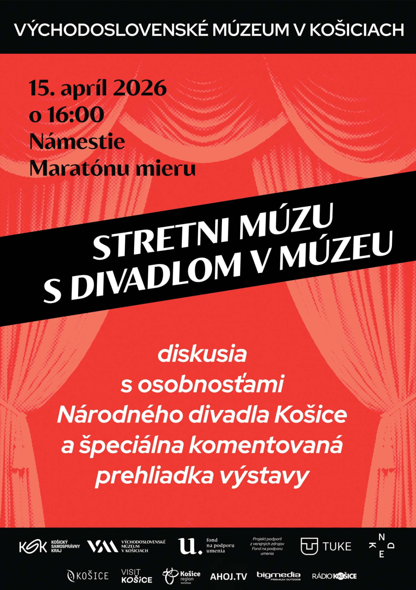 Tentokrát vás pozývame na diskusiu s osobnosťami Národného divadla Košice a špeciálnu komentovanú prehliadku výstavy Divadlo v múzeu, múzeum v divadle.